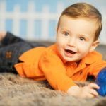 Little 8 month old Oliver was just a barrel of smiles – as long as he was on his tummy, that is. Whenever we tried to prop him up in the beanbag, in a basket, whatever – he would start to fuss. Put him on his belly, though and his good mood came right back. Ah, the little tricks we learn!