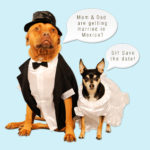 Rick and Courtney are having their dream wedding in Cabo San Lucas in a few months – and it was my pleasure to help them design their dream invitations to the wedding! Their five dogs were the stars of the shoot, with Tina & Buckley dressed up as the bride and groom. Remarkably, the dogs all behaved perfectly during the shoot! Next, was of course the design of the actual cards which was a discussion that went back and forth (and even included a brainstorming session over dinner at the Canal Club!) until we came up with the final, fabulous product!