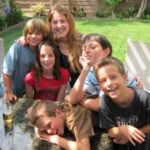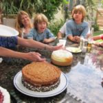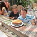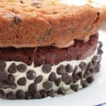 Sundays are my days off, and as much as I’d love to clean my house, do laundry and just veg out at home on those days – I’m lucky enough to have people who want to hang out with me. I have 3 brothers and 9 nieces and nephews ranging in age from 1 year to 18 years old, and every other Sunday we all get together for a big family BBQ at one of our homes (minus one of my brother and his wife and baby who live in Hawaii.) Yesterday was my father’s turn, and we all got together to celebrate my stepmother’s birthday. I love love love to bake, and whenever I have the opportunity to bake a cake or cookies I run with it. I think that chocolate chip cookies and brownies are prettymuch the greatest things ever invented – so my inspiration for this cake was a mixture of the two: two layers of brownie with a layer of chocolate and another layer of vanilla frosting all topped with a giant chocolate chip cookie. I also decorated the bottom with a layer of white frosting with chocolate chips as a little funny play on a “chocolate chip ice cream cookie.” I have hoping that the cake would be well received – but I could not anticipate the excitement and pushing to get at the front of the cake line that ensued when I finally revealed the cake! It made me so happy to create something that brought such joy to my family 🙂