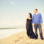 When mama maternity decided at the last-minute that she wanted to do shots at the beach, and her session was already scheduled for mid-day, I was hesitant to grant her request.  I typically only shoot at the beach at sunset since the light is waaaayyy too harsh to shoot at during the day.  However, our fantastic Production Manager, Leah, came with me to the beach and scraggly brush location – armed with a 4×6 foot diffuser and stood holding it to give our couple shade.  Leah almost blew away a couple of times, but we got the shots and I’ve actually impressed myself by getting great shots outside with only the shade that we created!