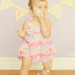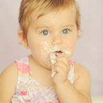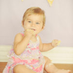 Little Parker has grown into quite the character since we last saw her for her newborn photo session. Mom and grandma brought her for her first birthday shots – complete with a home-baked cupcake cake! Parker is a first for a few things here at the studio: a first to actually get so excited and fired up that she did one more outfit after the cake smash…. most kids are not fans of the touch and taste of the frosting and the “hosing off” they get in the sink. Not Miss Parker though, she was ready to go! Parker was also the first baby we had to take the cake away from because she was literally double fisting grandma’s yummy cake – don’t worry though, there was plenty on her hands, arms and even her toes to keep her busy for a while. The last first was when Parker decided to stand up, dripping with frosting, and do some dancing at the end of the cake smash, cuz – well if I had gotten to eat half a cake I’d probably want to dance too 🙂