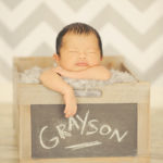 it just warms my heart! After a few years of being a newborn photographer I’ve learned to see a smile coming on a newborn’s face. It always happens when they are falling deeper asleep, and typically when they are comfy cozy on our furs underneath our ceiling heaters. Their little eyes start to flutter and sometimes they start to purse their lips a bit …that’s when I stand still as a statue with my finger on the camera’s trigger ready for a smile…. and then I just wait until I get a HUGE smile for a split second! There is nothing more precious than a newborn smile, and nothing more satisfying than capturing that fleeting little moment. Baby Grayson gave us just one smile – but oh what a big one it was!