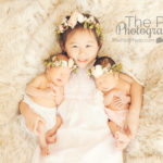When these twin baby girls arrived to the studio, I knew their mom was a huge fan of the head hold. Since I love challenges, I said – “how amazing would it be to do a double head hold with no Photoshop!” Everyone has a milestone they want to achieve in their career – and I am proud to say that I did it! Twins holding their head up at the same time 🙂 There are so many fantastic photos in this session, including big sister’s, and it is a super favorite session to date!