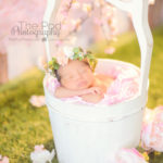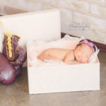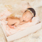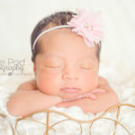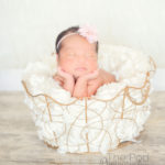This family was especially fun to photograph since they had so many cute ideas for their daughter’s newborn pictures. Dad is a jujitsu teacher – and so it was important to them that we incorporate dad’s job into the pictures… but in a cute girly way of course (for mom!) Luckily we had some boxing gloves at the studio and we paired them with a shimmery box that made both parents happy. Dad also brought his uniform and at the very end of the session when this little girl woke up, we popped her in and captured one photo of her in his uniform. Overall, we brought these new parents’ vision of soft, girly, light colors and timeless imagery to life and we had a blast doing it 🙂