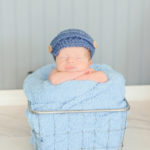 With these two infant twin boys we were actually inspired by Grandma – well, the blankets she knit at least! Grandma knit each of the boys their own snugly blanket, one in gray and the other in a bold blue. We used her lead to style the boys images, and had one baby’s pictures always have gray accent colors while the other boy was in blue. This way, we kept a nice harmony throughout the sets and blankets we used, and then just brought in pops of color to differentiate each boy.