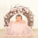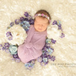 As a Hollywood newborn photographer – we see many little babies per week. This beautiful lady has twin older brothers – but mom wanted us to focus on just her at her newborn photo session. Purples and floral elements were the direction mom wanted to go; and so we created several soft, sweet and timeless sets for this baby girl.